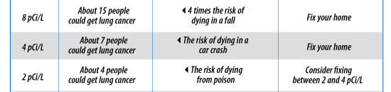 You must provide the answer to this question based on the following data and your personal risk tolerance. The EPA’s take action level is 4 pCi/L.